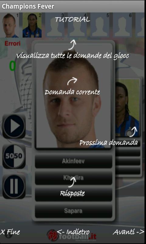 ความท้าทายเป็นเพียงสิ่งนี้ แชมเปี้ยนส์และความล้มเหลวแสดงรูปถ่ายของผู้เล่นฟุตบอลแชมเปี้ยนส์ลีกและสี่ชื่อระหว่างที่คุณต้องเลือกชื่อที่เหมาะสม