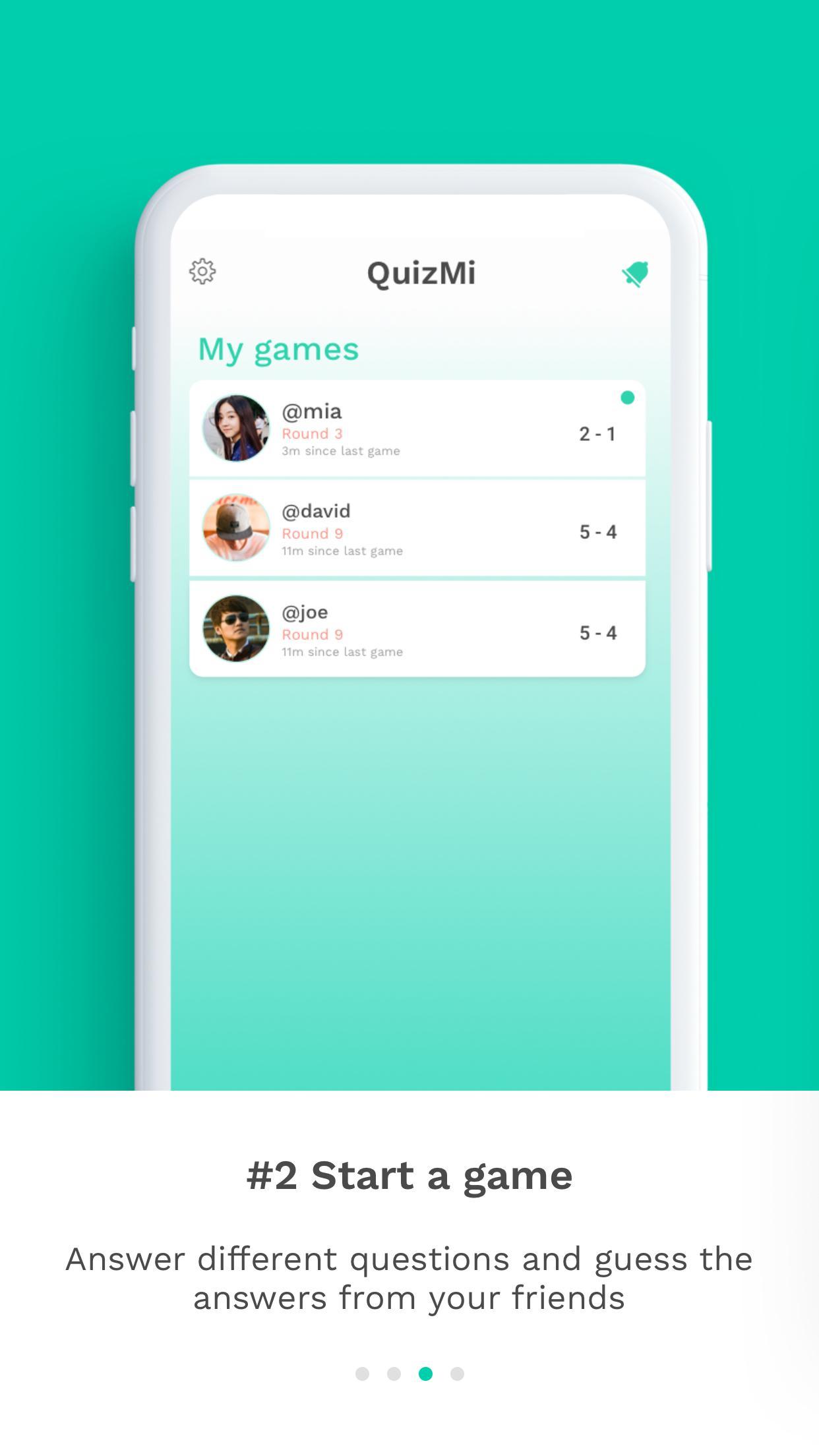 อยากรู้เสมอว่าเพื่อนหรือคนที่คุณรักรู้จักคุณดีแค่ไหน? คุณสามารถค้นพบสิ่งนี้ด้วย QuizMi ! ดาวน์โหลดแอพและเล่นออนไลน์กับเพื่อนของคุณ ค้นพบความลับของพวกเขาโดยถามคำถามที่กล้าหาญตลกและส่วนตัวมากที่สุด คุณรู้จักกันดีพอที่จะรับสติกเกอร์ทั้งหมดหรือไม่? เล่นและค้นหา! QuizMi นำเพื่อนและคนที่คุณรักเข้ามาใกล้กัน