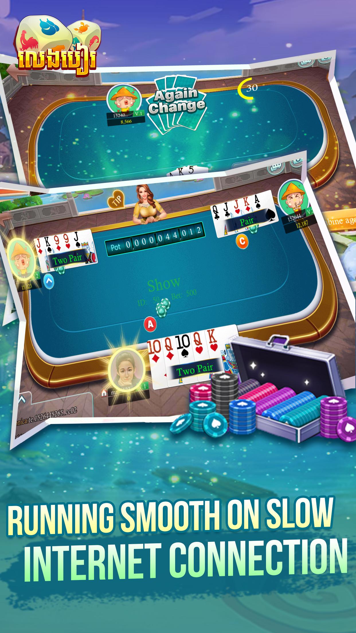 LengBear - เกมการ์ดเขมรมีเกมไพ่ยอดนิยมทุกประเภทเช่นโป๊กเกอร์จีน, Pokdeng, Bork, โป๊กเกอร์, ... ด้วยการสนับสนุนภาษา Khmer เต็มรูปแบบ