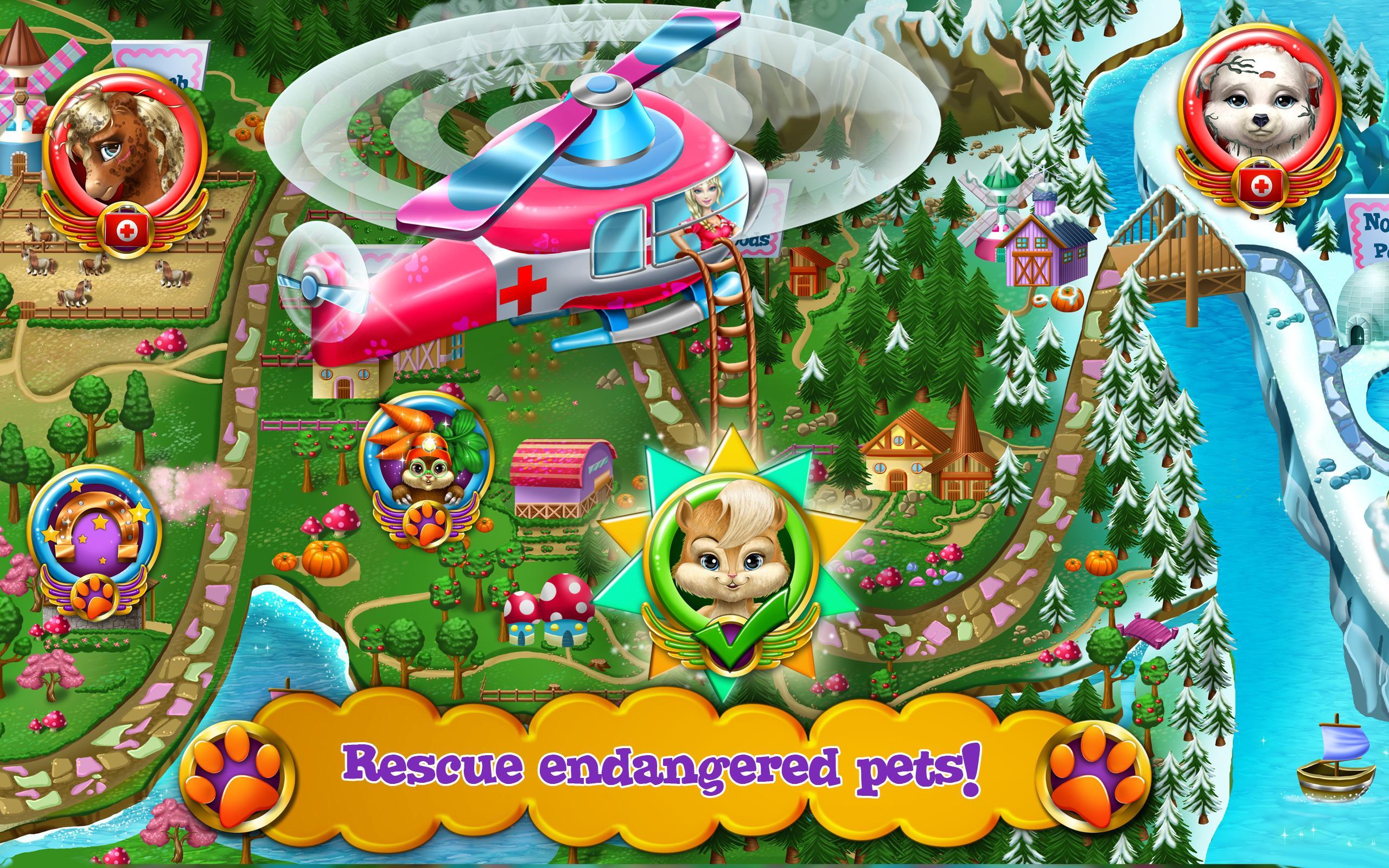 ขอให้สนุกกับการเดินทางกับเฮลิคอปเตอร์สัตวแพทย์ข้ามแผนที่เพื่อช่วยเหลือสัตว์เลี้ยงทุกตัว เมื่อทารกได้รับการบันทึกสัตว์เลี้ยงที่ใกล้สูญพันธุ์ตัวใหม่จะได้รับการปลดล็อคเพื่อขอความช่วยเหลือจากคุณ!