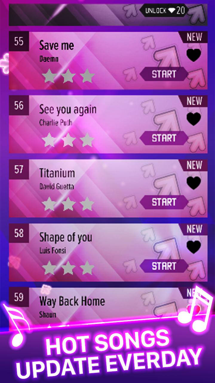 คุณสามารถสัมผัสกับลูกศรและสีตลกประเภทหนึ่งอย่าลังเลที่จะลอง! ติดตามจังหวะเพื่อแตะลูกศรของ " Beat Audition - New Songs Piano 2018" หลีกเลี่ยงการเลื่อนลูกศร