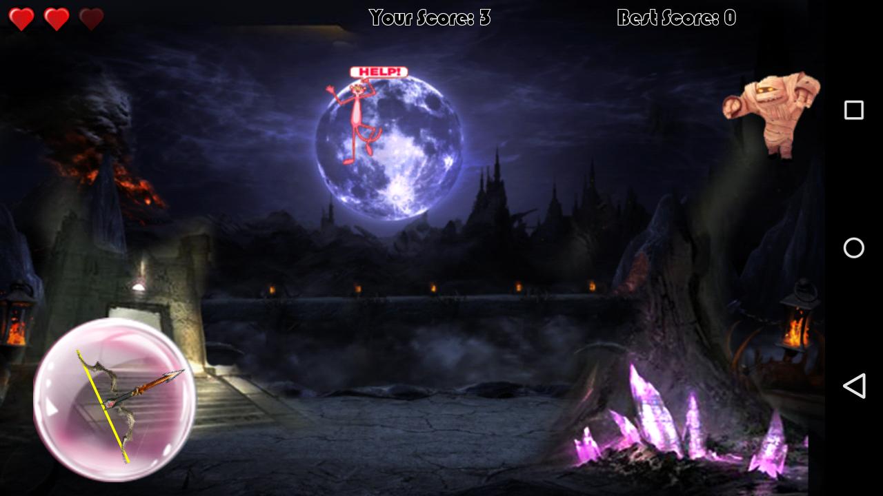 เพื่อช่วย Pink Panter คุณต้องพยายามอย่างดีที่สุดในชีวิตประจำวันโดยใช้ธนูและลูกศรฆ่าการแก้แค้นทั้งหมดของมัมมี่