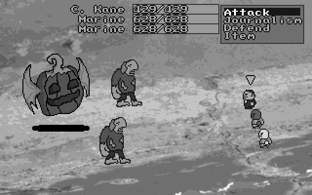 C. Kane เป็นเกม RPG แบบเทิร์นแบบเทิร์นแบบสั้นซึ่งทำให้ประเภทของประเภทเป็นพื้นฐาน ต่อสู้กับสัตว์ประหลาดพูดคุยกับผู้คนเล่นแต่งตัว ดันเจี้ยนมีความเรียบง่ายกราฟิกเป็นโมโนโครมและเสมือน 8 บิต การต่อสู้แบบสุ่มไม่มีอีกต่อไปผู้บังคับบัญชามีมากมาย ฉลามนำทางไป ซาวด์แทร็กฮิปฮอปดั้งเดิมให้จังหวะ