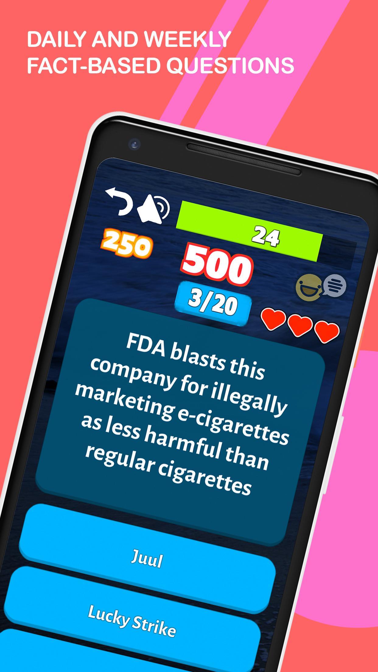 คำถามข่าวประจำวันของ Newsmeister เป็นแบบทดสอบข่าวรายวันฟรีสั้น ๆ ที่ใช้เวลาน้อยกว่า 3 นาทีในการเล่นและเสนอข่าวทั่วโลกให้กับเพื่อนของพวกเขา