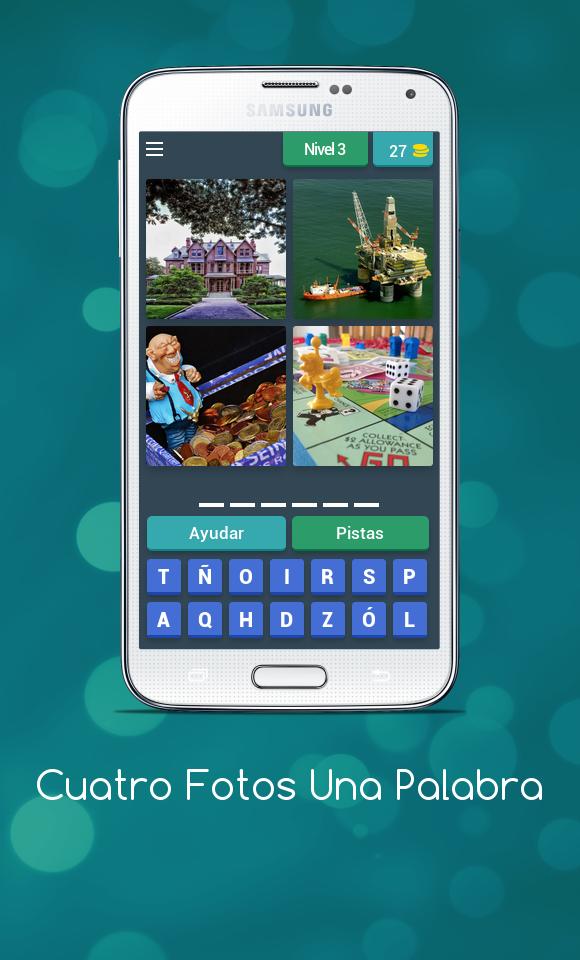 Cuatro Fotos Una Palabra เป็นเกมที่สนุกที่คุณควรใช้ความเฉลียวฉลาดทั้งหมดของคุณเพื่อค้นหาคำที่ซ่อนอยู่เพื่อให้บรรลุเป้าหมายนี้คุณจะต้องสังเกต 4 ภาพถ่ายที่แสดงเบาะแสของคำที่ต้องการ