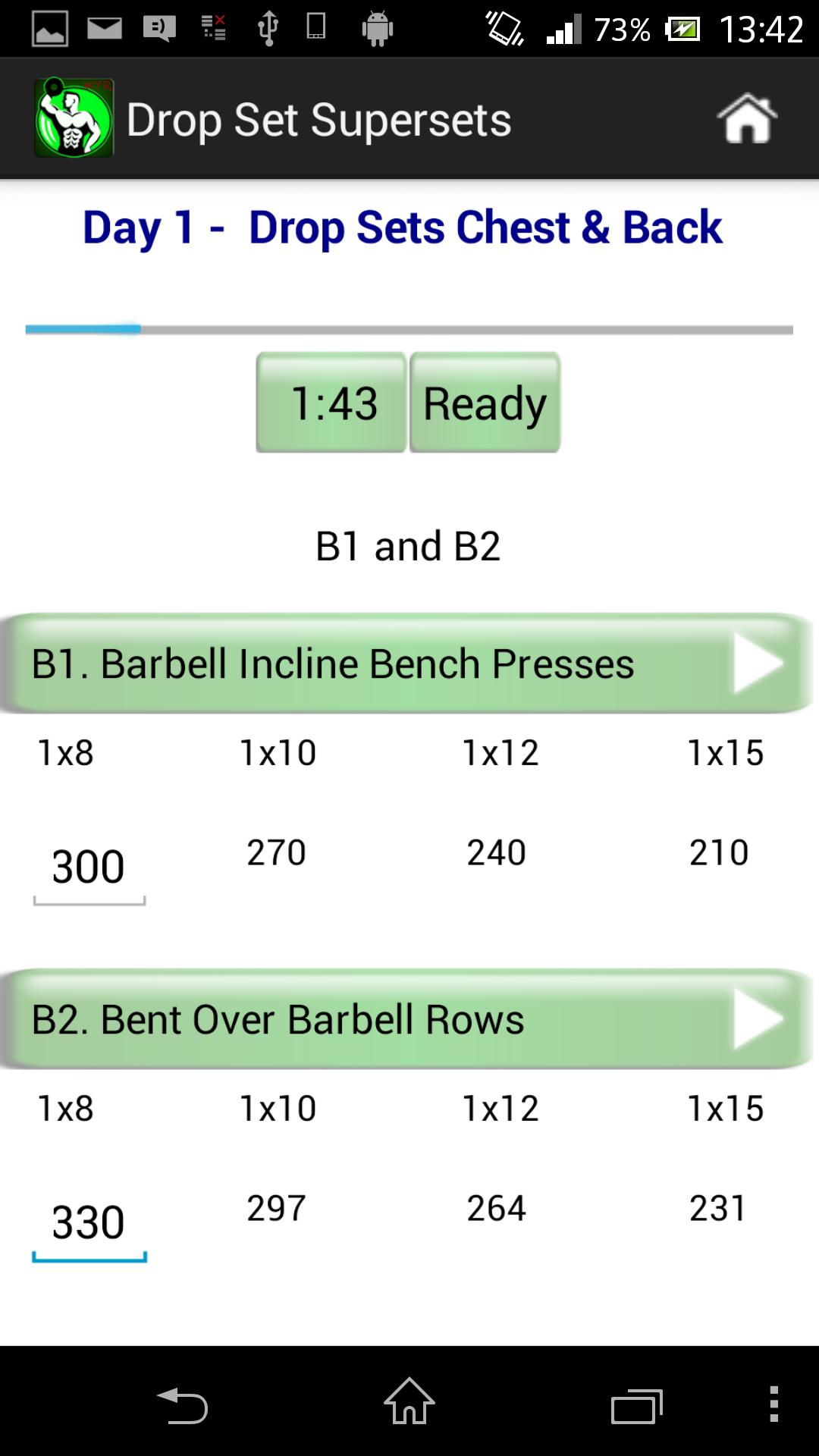 滴剂超集 - 这是一个很棒的高原杀人锻炼。首先要适合第一组,然后每组减少10%的重量。在所有集合完成之前,在没有休息的A1和A2之间进行交替。休息2分钟,然后再进入B1和B2。重复C。