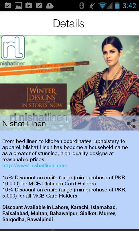 MCB Discounts App提供了MCB向其卡持有人提供的折扣的完整目录。