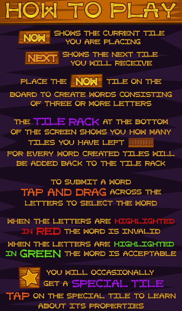 ►特别的瓷砖通过增加新的好处和挑战来增添游戏玩法。这些瓷砖为传统文字游戏增添了有趣的转折,并具有炸弹,砖砌瓷砖,通用卡等属性!
