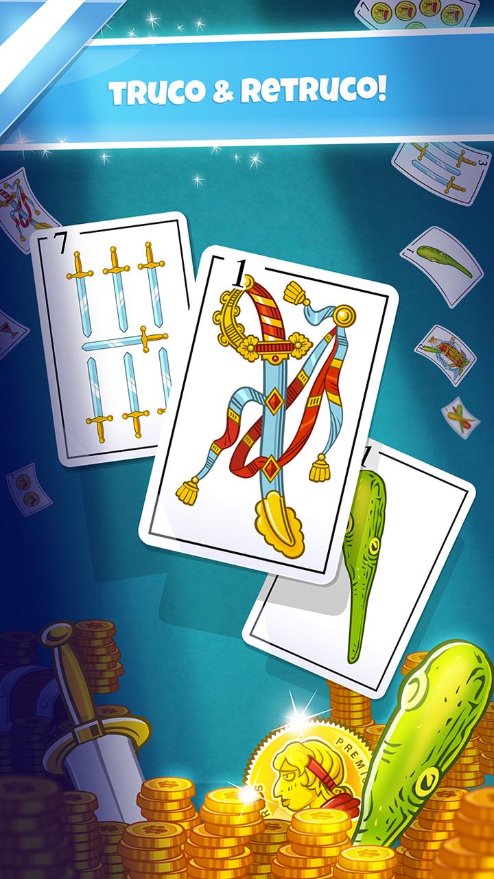 Truco Argentino是最初来自西班牙的西班牙甲板的纸牌游戏。 Truco Argentino游戏在整个美国都是著名的,主要在南美。 Truco有不同的版本,但最著名的是Truco Argentina。