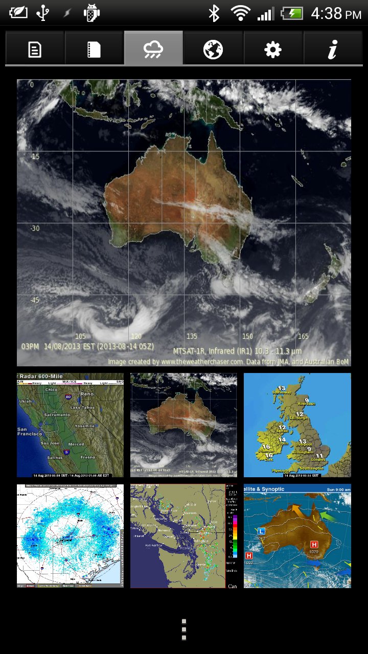 * 显示在线WX(天气)图像(例如多普勒雷达、云层、卫星等)。