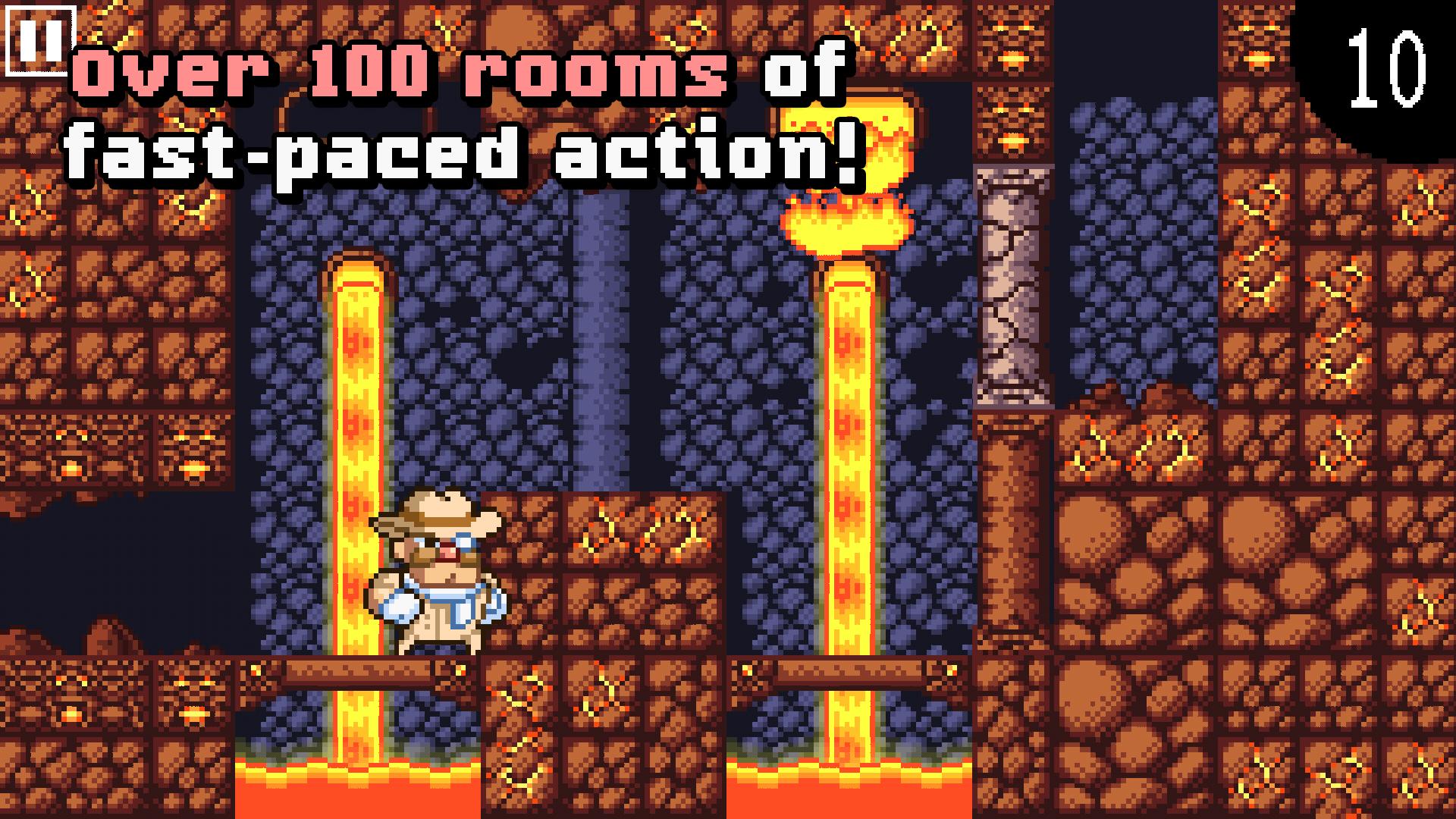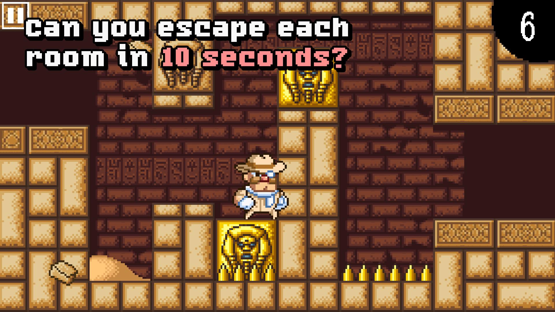 杜克·达辛顿(Duke Dashington)是一位笨拙的冒险家和探险家,他倾向于造成他正在探索的古老废墟崩溃的趋势,甚至在他踏上脚步之前!幸运的是,杜克(Duke)的脚步很快,他决心在天花板倒塌之前将宝藏倒入内部!在数十个致命的陷阱和难题中冲刺,但要保持警惕:您只有10秒钟即可到达每个房间的出口,而杜克(Duke)不能先不先打东西就停止移动!您有成为世界上最快的寻宝者需要什么吗?