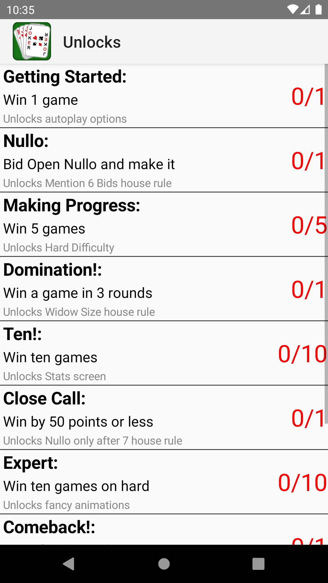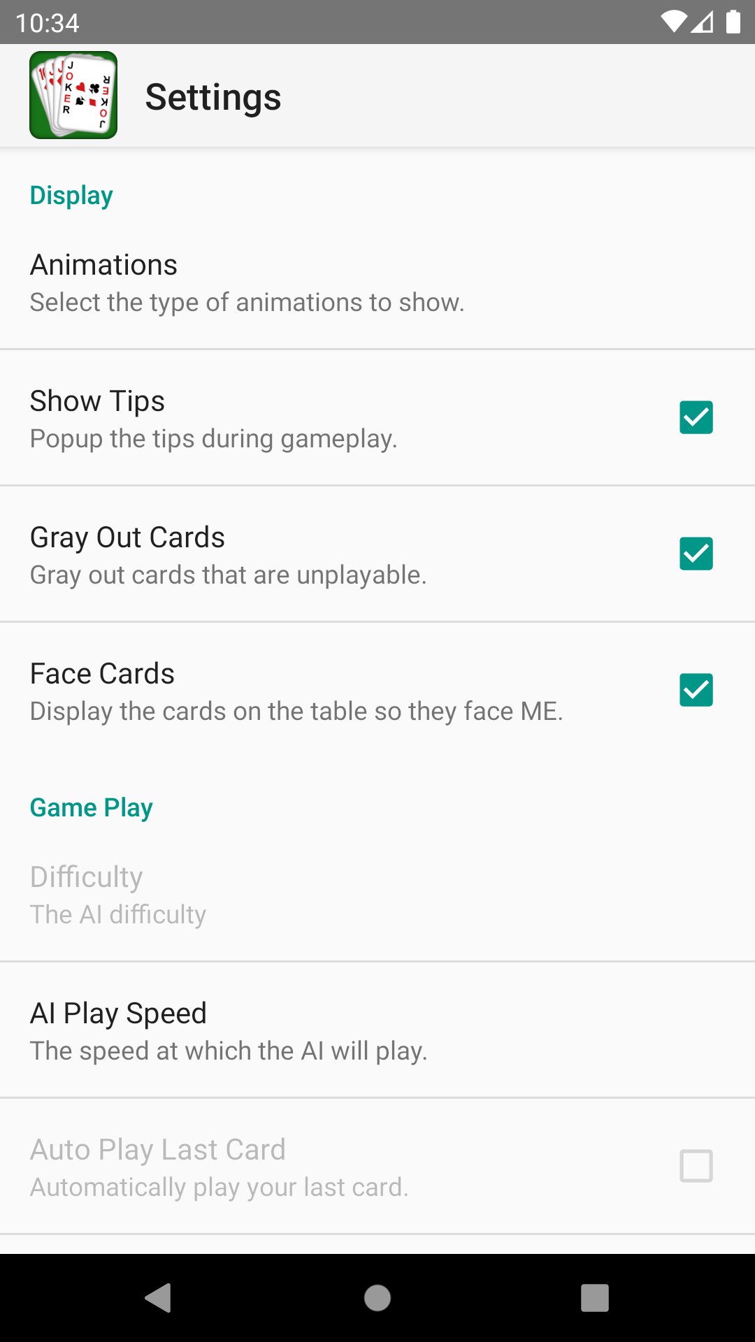 与具有挑战性的 AI 玩家一起玩 500 场比赛,享受众多设置、可解锁项和统计数据!这个应用程序包括: