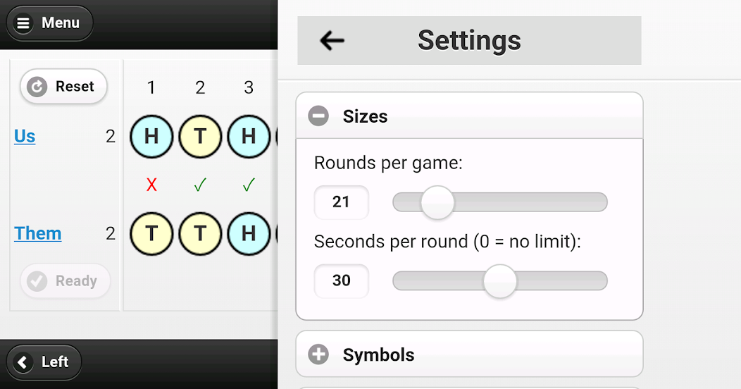 最重要的是,该应用程序使您可以通过通过Wi-Fi连接移动设备来与人类对手进行比赛,因此您可以运用所学到的知识。您可以通过将每场比赛的回合数设置为1到99之间的任何奇数来控制难度的水平。要求将奇怪的数字与岩石,纸张,剪刀Matching Pennies的优势。在比赛中没有奇数的比赛中没有领带。这使其成为与朋友解决分歧的更好方法!