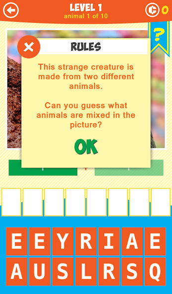 欢迎来到地球上最疯狂的动物园!我们采取了无关的动物,创造了神秘的新生物:奇怪,意外和有趣的图片。看图片,并尝试猜测使用哪些动物或昆虫来创建这些新的小怪物!一个,二,三开始,与您的朋友和孩子一起玩!令人惊奇的是一种Brainteaser Word Game!