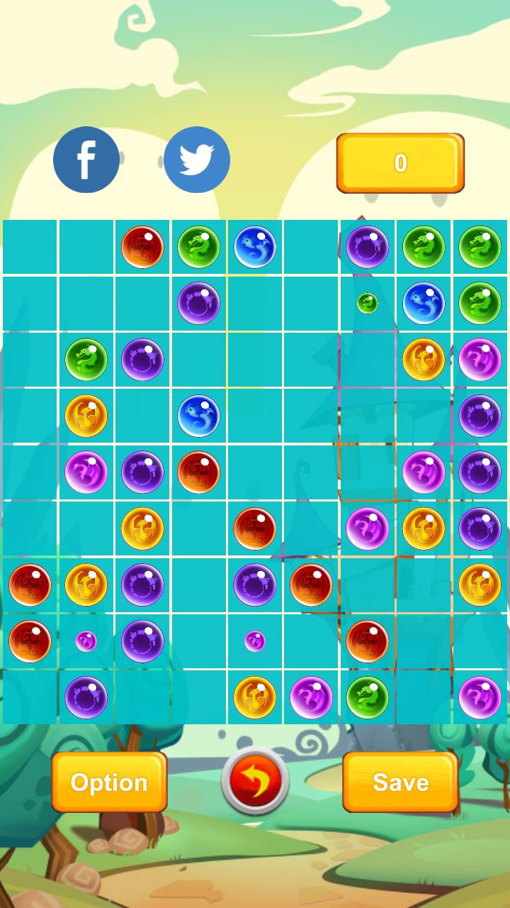 目的是通过制作各种颜色各种线的球来得分尽可能多。用触摸移动球。首先选择要移动的球,然后选择一个空的目的地正方形。如果目的地广场被另一个球占据,那么现在选择了该球。请注意,您不能总是将球放在想要的地方。移动球后,除了形成一条线时,再出现三个。形状的球越多,您得分的得分就越多。