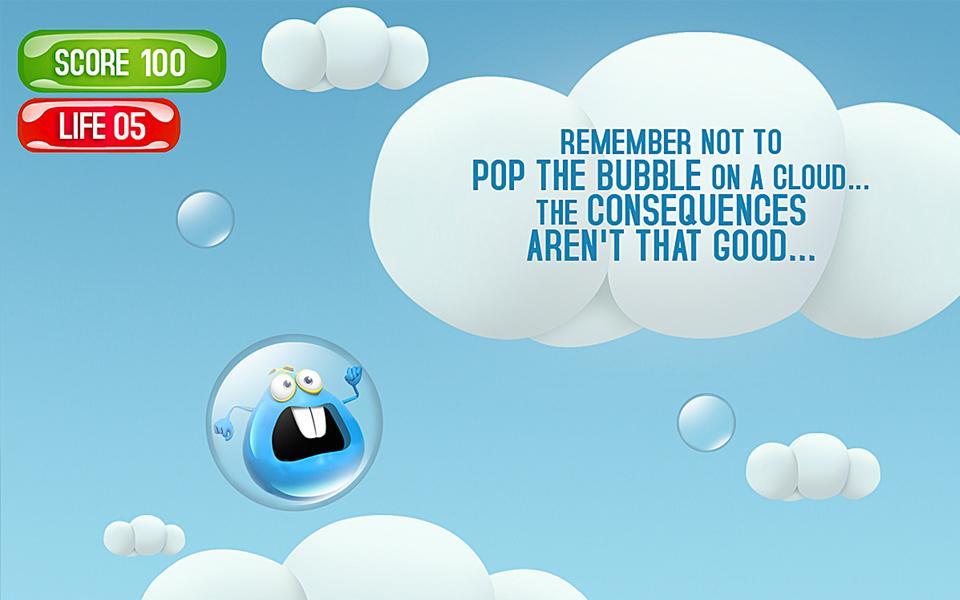 进入巨大的浮动气泡,收集更多的气泡进行...请记住不要在云上弹出气泡...后果不是很好...