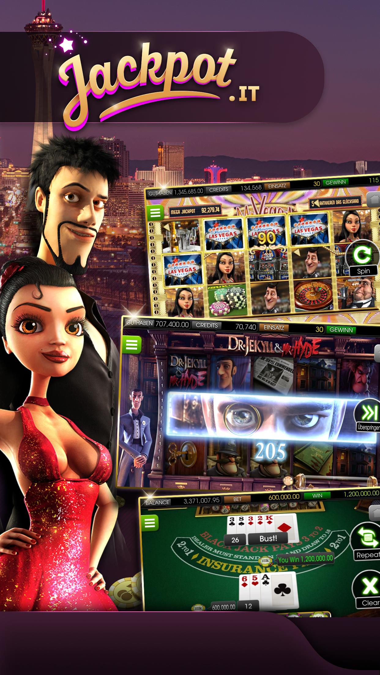 超过70个最佳老虎机和吸引人的头奖 - 仅在Jackpot.it中。赌场应用程序!包括拉斯维加斯的气氛。