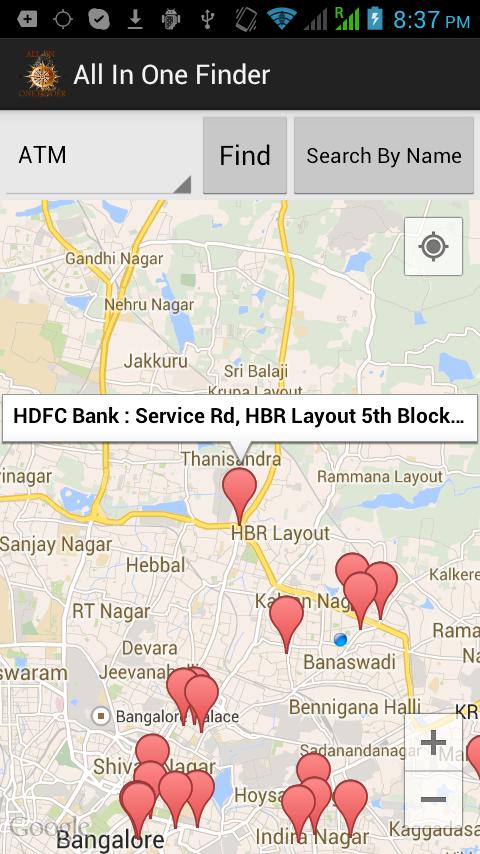 該應用顯示附近的位置餐廳,銀行,ATM,學校,醫院,寺廟等。