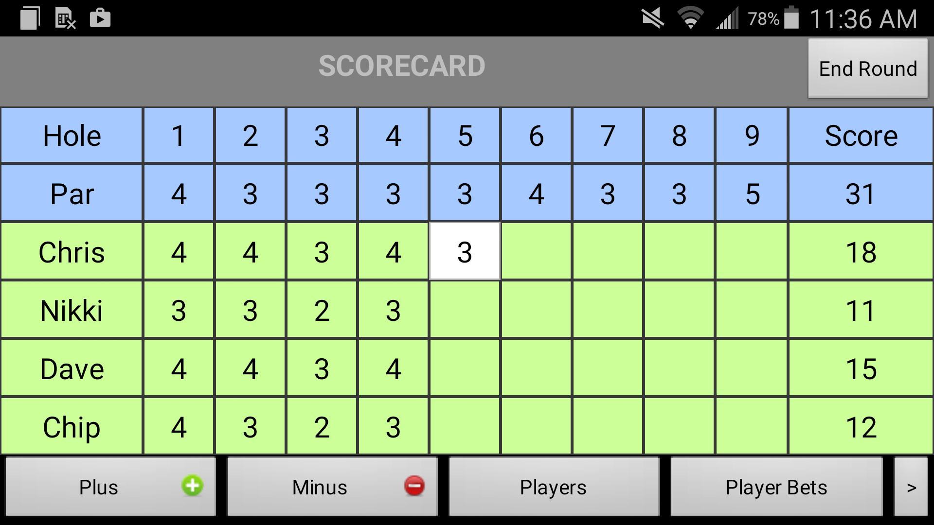 - 在回合結束時向您自己或朋友發送電子郵件以炫耀您的技能的全部記分卡