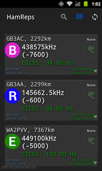 該程序可以確定您的位置,並輸出在您的直接環境中的中繼器列表,並按距離您的距離訂購。
