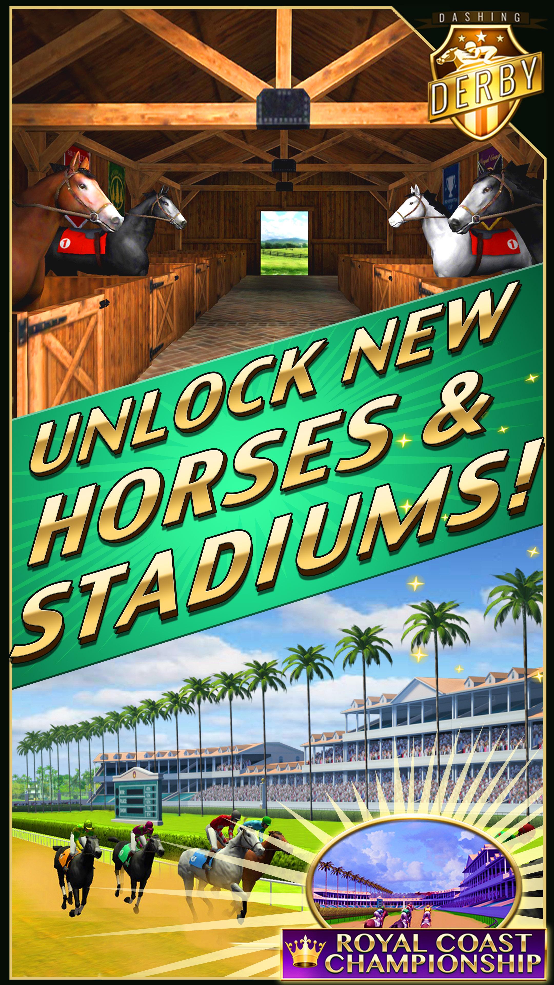 您贏得的每場比賽都會賺取現金,您可以用來解鎖新馬匹和新賽道,並獲得更大的現金獎品!
