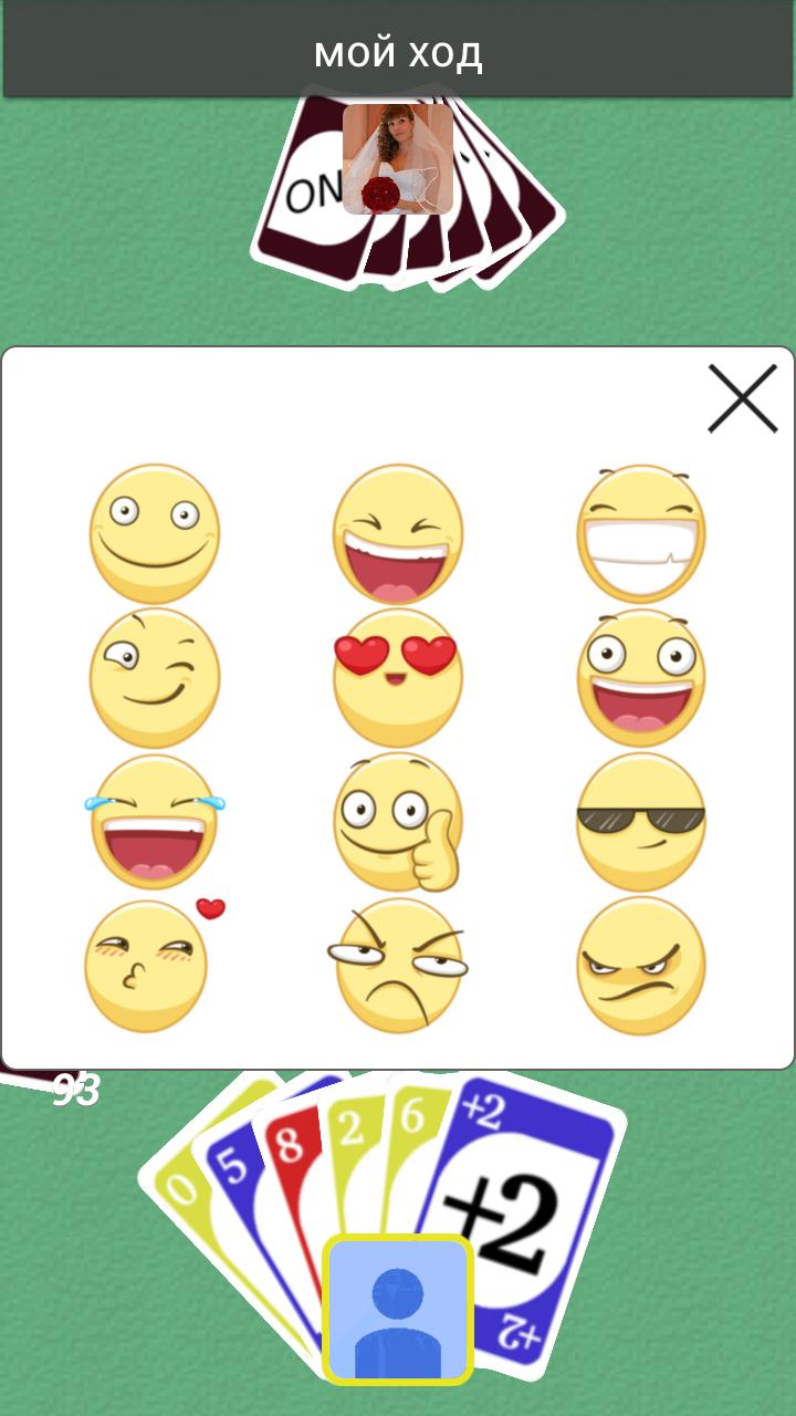 卡片甲板包含四種顏色,其中包括0到9的數字,以及特殊的卡片 - “反向”,“跳過”,“取兩個”,“野生”和“野生拿走四個”。