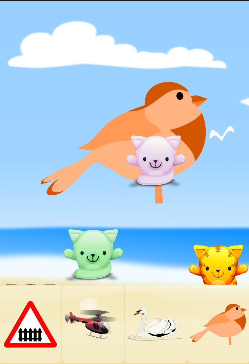 嘗試從陰影中猜出動物。適用於2至5歲的兒童。關於形狀和陰影識別的許多遊戲都可以使用,但是沒有人那麼易於使用,陰影和形狀很容易識別。按鈕是嬰兒的證明,足夠大,可以讓蹣跚學步的人點擊它們。圖像大又美麗,可以吸引您的孩子。猜測形狀和陰影將提高您的孩子能力,您可以獨自一人玩耍,因為它很容易,任何人都可以做到。我發誓我的孩子在一年半的時間裡開始玩耍,我很驚訝地看到他很高興。看看視頻,視頻中有20個月大。如果孩子設法猜測正確的形狀或陰影,他將獲得一堆貓,氣球在屏幕上移動,他必須敲打它們。此外,此練習將提高移動時觸摸小東西的能力。