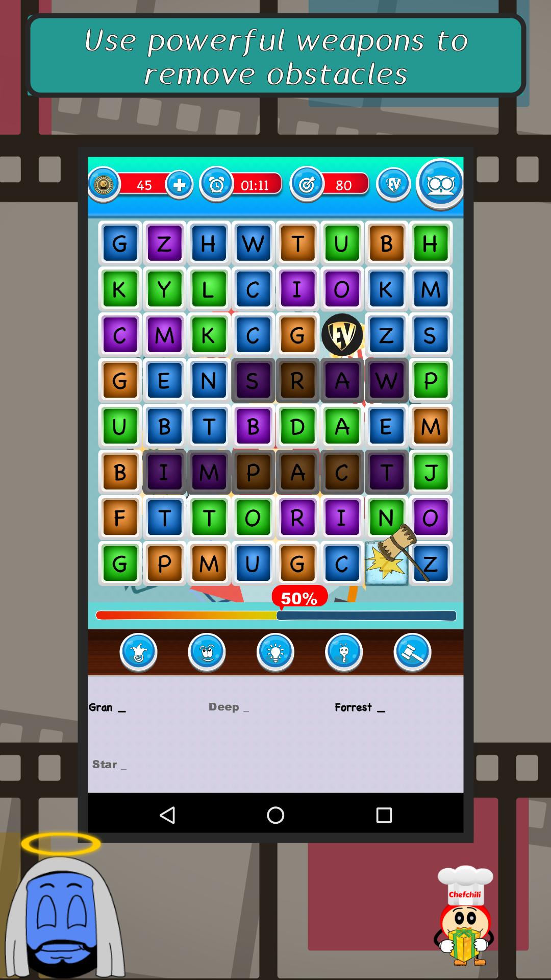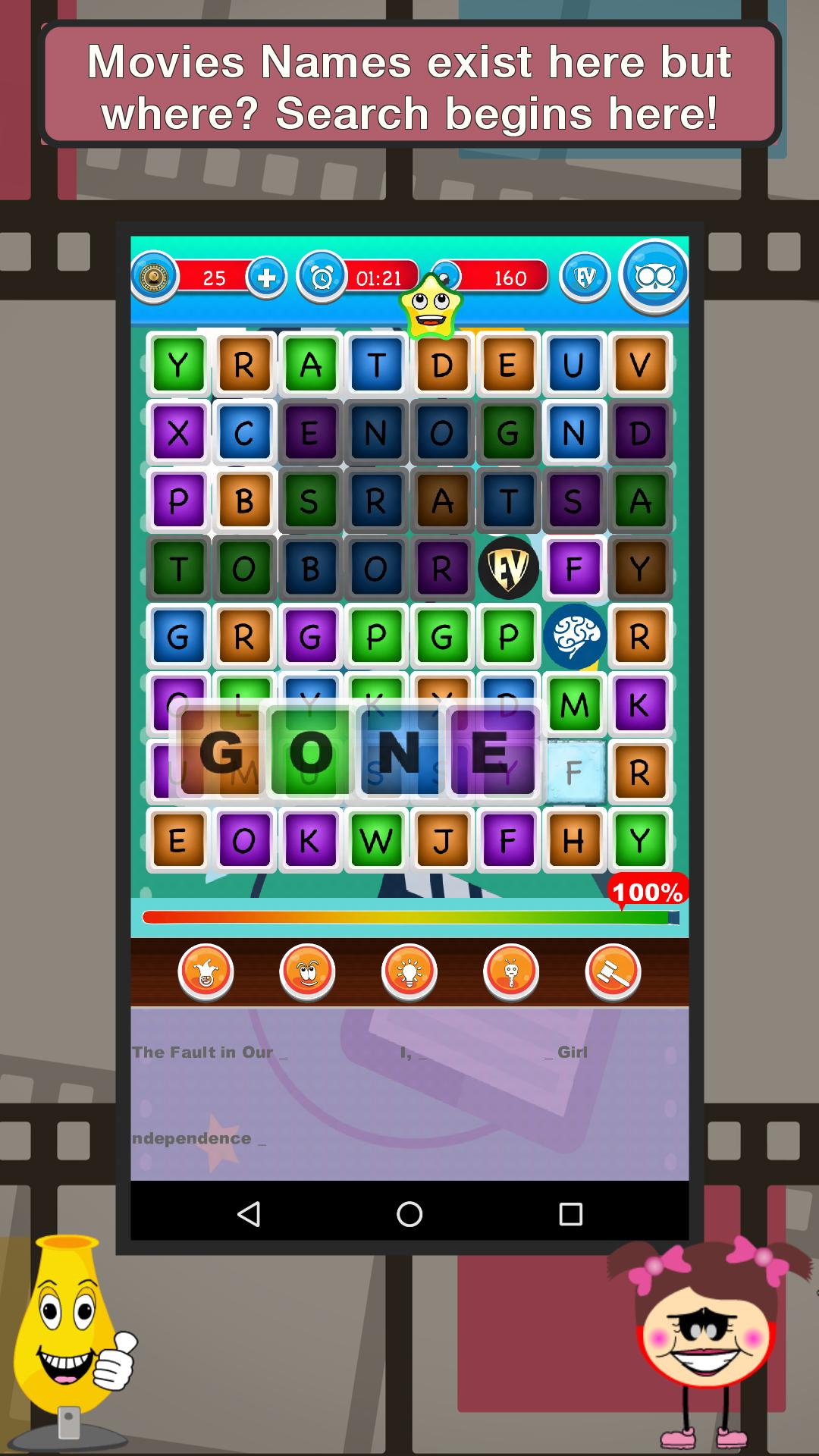 電影熱潮吸引了整個世界。了解所有有關勵志,浪漫,動作,驚悚片,恐怖和紀錄片的了解。查看名人,時尚,音樂,對話,成就,獎項,有趣的事實等。這個詞搜索遊戲是電影愛好者和發燒友的捲軸和真正的樂趣。在遊戲部分中,您可以在網格中搜索隱藏的電影名稱。列表在下面給出。您必須找到所有的單詞才能移至新的層次。