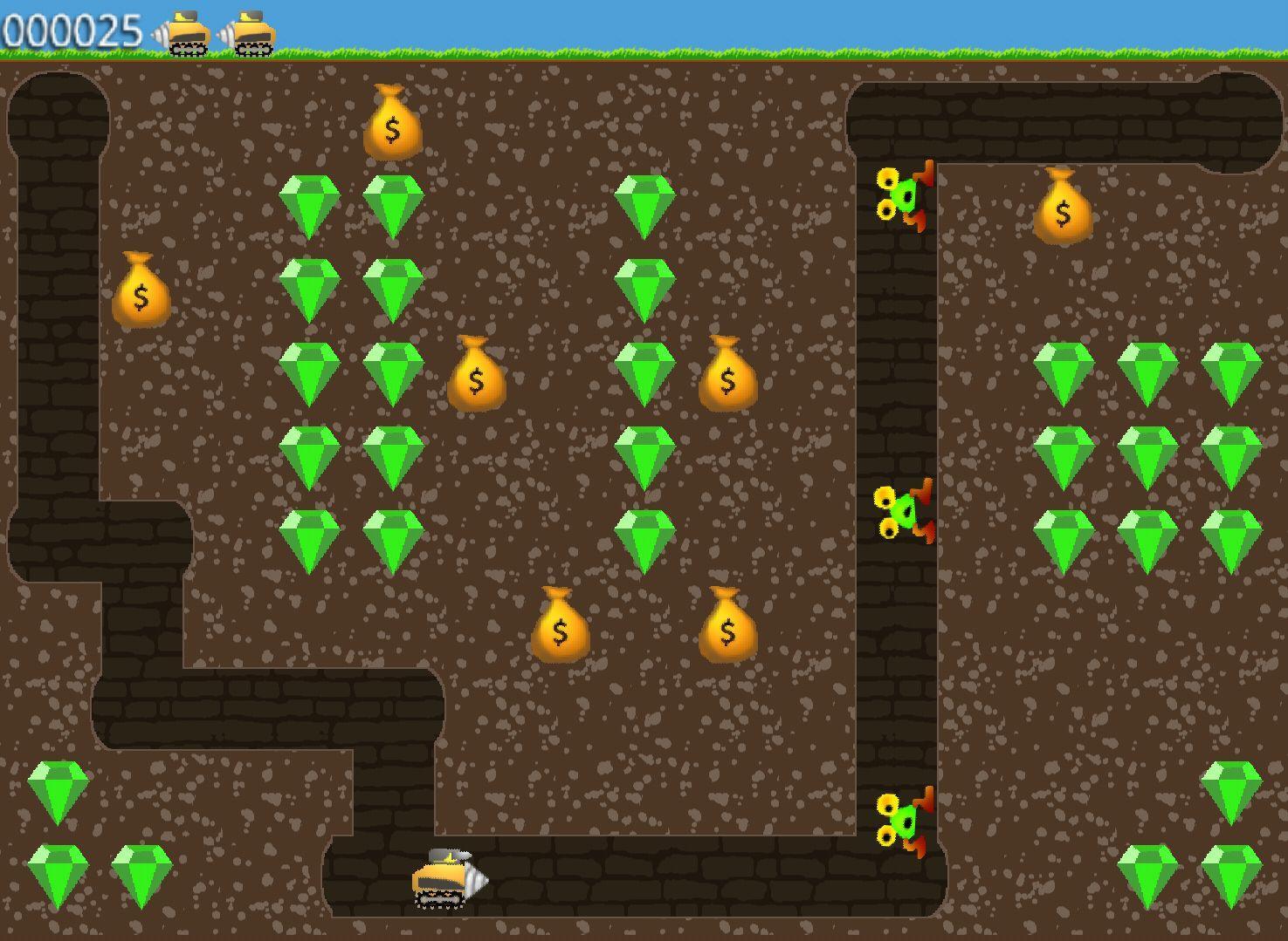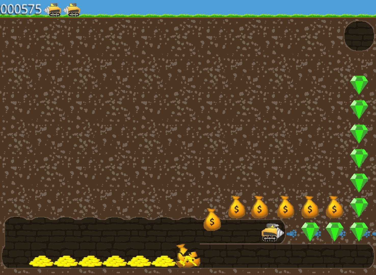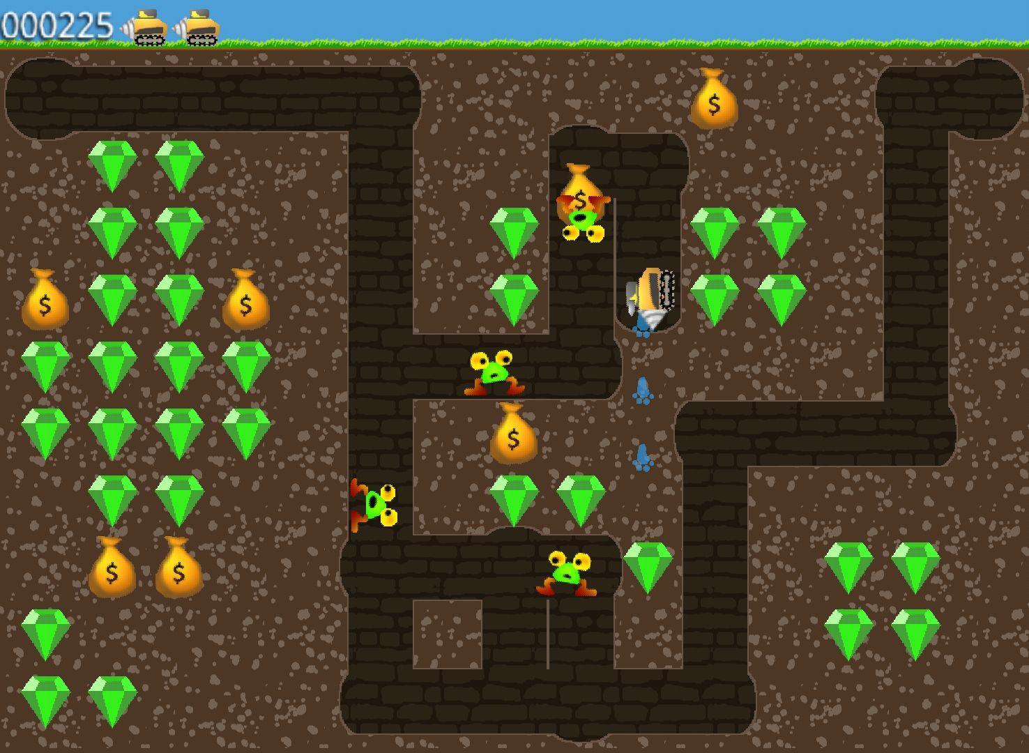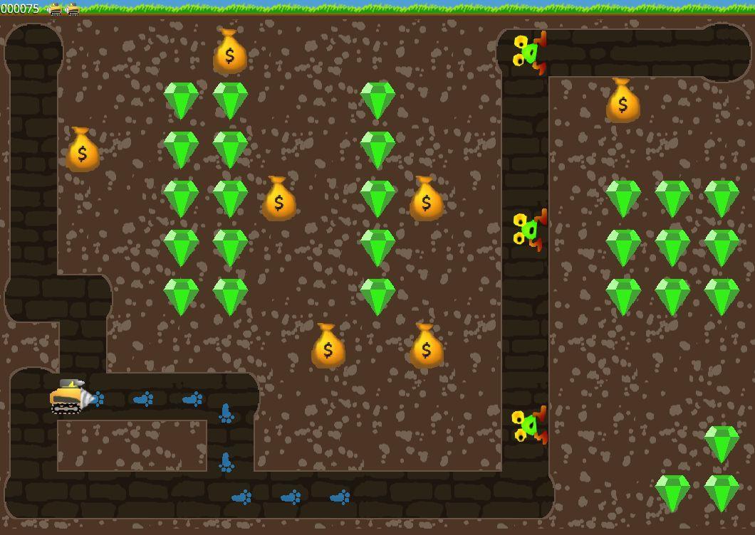 Digger Touch是80年代流行遊戲的翻拍。每個級別的目標是收集所有祖母綠或殺死所有怪物。還有一些黃金袋,您可以通過挖掘其下面的地球或使它們掉入超過一排瓷磚來打破打開。一旦釋放黃金,您就可以收集更多點。一定數量的積分授予新的生活,因此得分越高,您就能進步越多。